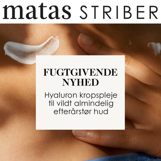 Vores hud er påvirket af sæsonerne. Særligt i efteråret, hvor vejret skifter fra lunt til køligt, er det vildt almindelige at få efterårstør hud. Matas Stribers nye Hyaluron kropsplejeserie hjælper dig med at holde huden hydreret ved hjælp af den langvarigt fugtgivende ingrediens hyaluronsyre. Serien består af 4 produkter med en diskret duft, der omfavner din krop med fugt i og efter badet, så du kan gå igennem efteråret med fugtmættet hud.
