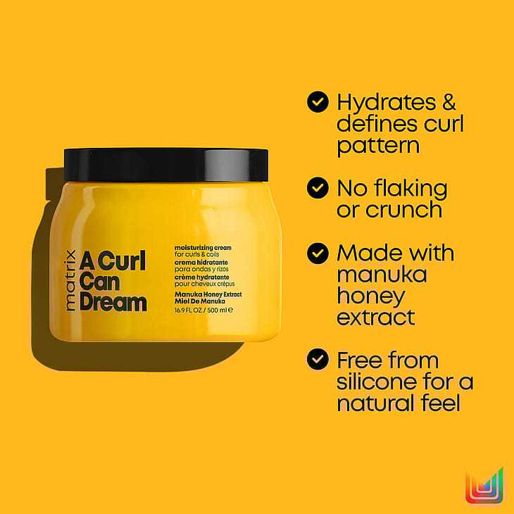 Matrix leave-in-hårcreme til alle typer krøllet hår giver intens fugt, uden irriterende produktrester eller at håret føles stift.