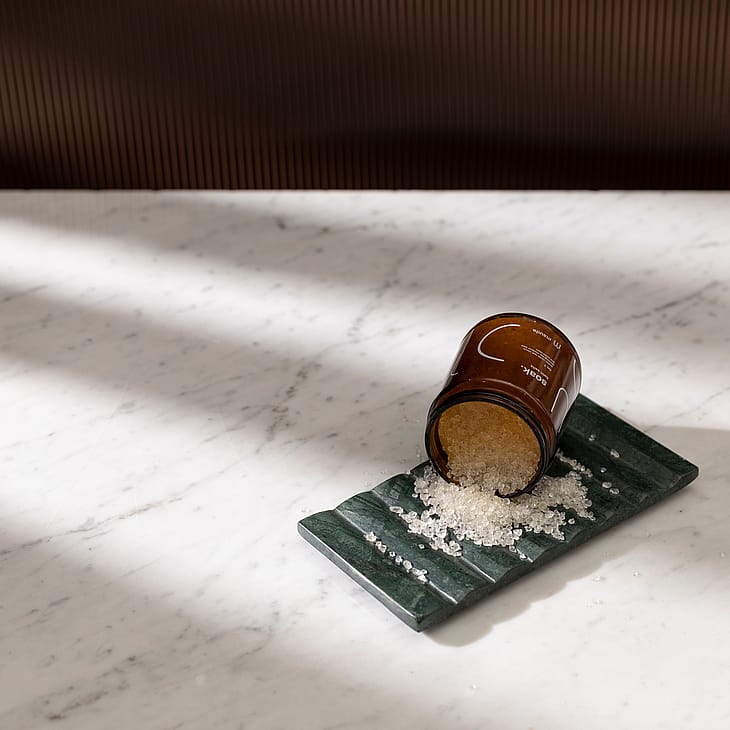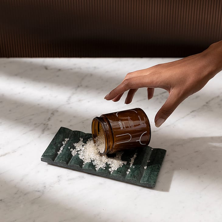 Nærende mineralske badesalte blandet med varmende noter af rav, cederblad, citrongræs, tonkabønner og medjool daddel.