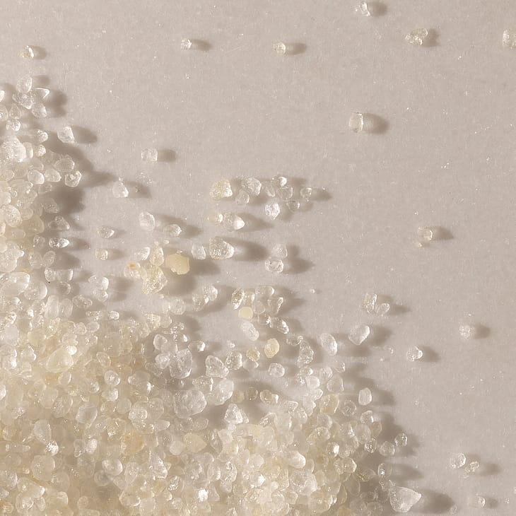Nærende mineralske badesalt blandet med lyse noter af pink peber, gurjun balsam, citron Californien og cedertræ Virginia.