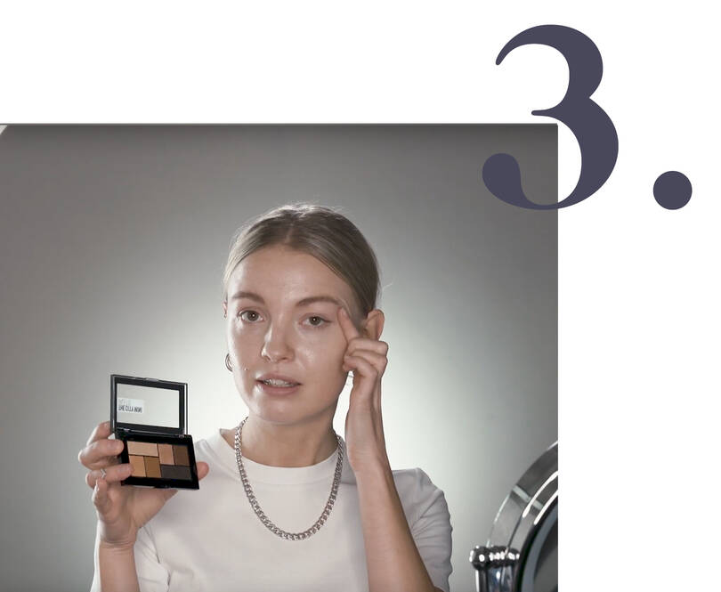 Julie bruger Maybelline The City Mini Palette til øjenene. Først kommes en af de lysere øjenskygger på hele øjenlåget, og for at definere øjet kommes en mørkere farve på i det yderste af øjenkrogene.