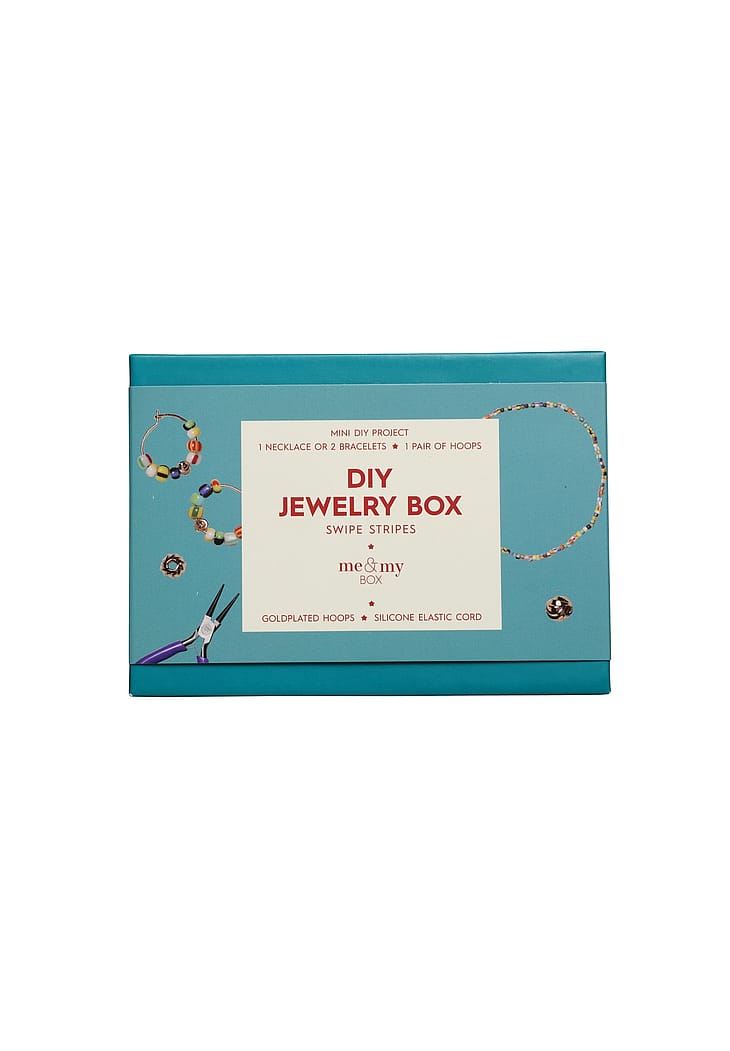 Boxen er fyldt med lækre striber og farverige farver. Lille og lækker eksklusiv box. Man trækker en lille skuffe ud, som indeholder alle smykkedelene samt et lille velkomstkort med en QR kode, der giver direkte afgang til inspiration og DIY teknikker.