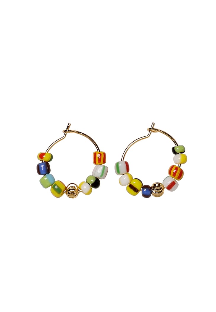 Boxen indeholder - Smykkedele: Hoops, forgyldte perler og silikonesnor