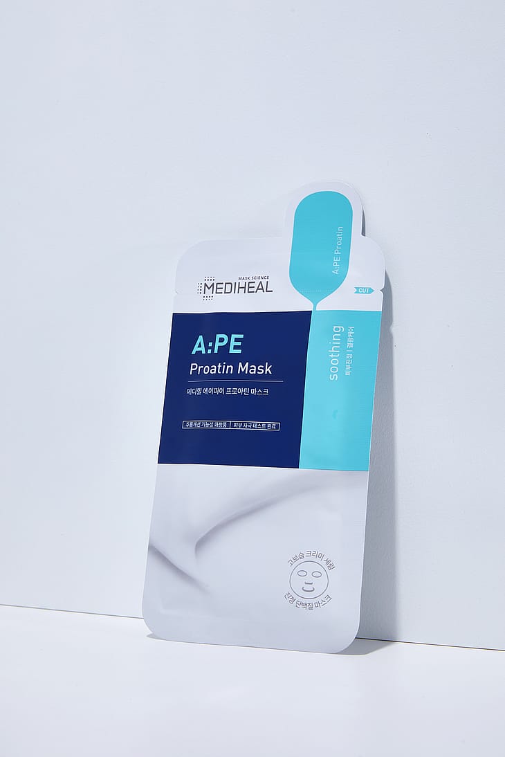 MEDIHEAL A:PE PROATIN MASK er en beroligende maske, der indeholder ekstrakt fra edelweiss-plante og fermenteret ekstrakt fra California yerba santa.