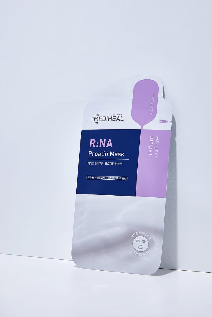 MEDIHEAL R:NA PROATIN MASK er en revitaliserende maske, der lysner, nærer og opfrisker huden med en unik blanding af niacinamid, vitamin C og antioxidanten glutathion.