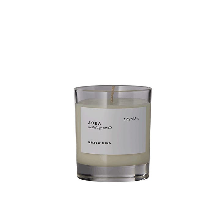 Mellow Minds AOBA Scented Candle er en opløftende og forfriskende duftoplevelse med noter af økologisk pebermynte, rosmarin og tea tree æterisk olie.