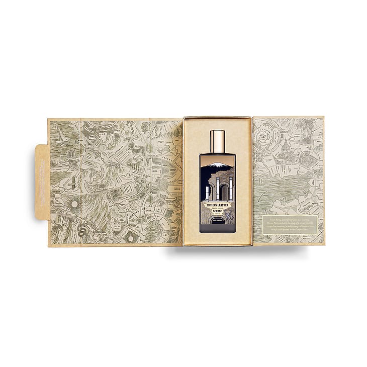 En ø. Hvis navn minder om en cikadesang. Solen står stolt, jorden byder den velkommen, frugterne er spækket med den. Italiensk bergamotolie. Bitter appelsinolie. På Middelhavets største dame vogter Etna. Vulkanens ånd, dens overlegne tilstedeværelse. Basalgran og hvidt læder. En ø med karakter, skabt til en zesty, energisk, eruptiv læderakkord. Varm og opkvikkende på samme tid. Fra gyderne i det pulserende Palermo, mellem kardemomme og korianderfrøolie, på de blomstrende højder i Taormina, en violbladet akkord, ind i Tempeldalen, udfolder den smukke sicilianske sjæl sig. I dens lande, i dens bjerge, snor sig en sti af harpiks og træer. Cedertræ atlasolie, gaiac træolie. En parfume til hende, der er lige så tellurisk som den er luftig, og som tillader mødet mellem vand og ild og læder.
