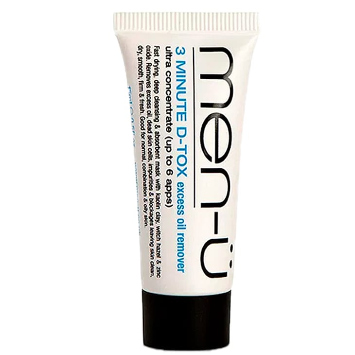 Men-ü 3 Minute D-tox ansigtsmaske er en hurtigtørrende, dybderensende og absorberende maske med kaolinler, troldnød og zinkoxid. Masken fjerner overskydende olie, døde hudceller, urenheder og blokeringer og efterlader huden ren, tør, glat, fast og frisk.