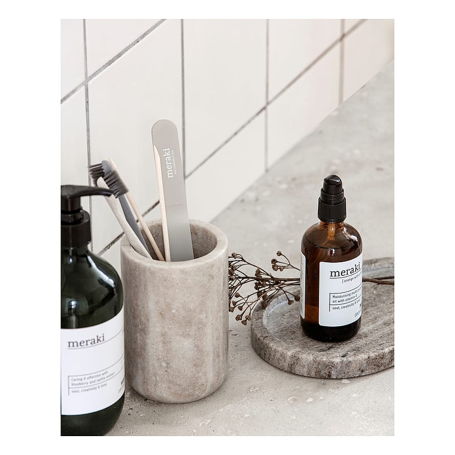 Den smukke bakke, Marble, fra Meraki er perfekt til opbevaring af småting. Bakken har et naturligt look med rolige, beige nuancer, som giver den et tidsløst og eksklusivt udtryk. Du kan med fordel bruge bakken på badeværelset, til organisering af cremer, parfume og make-up. Kombiner med andre farver og materialer, for et personligt og unikt udtryk. Obs: Dette er et unikaprodukt og kan variere i finish.