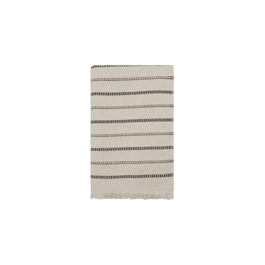 De garnindfarvede striber i råhvid og sort skaber et tidløst og elegant udtryk, mens de sofistikerede frynser giver et strejf af eksklusivitet i din daglige rutine.