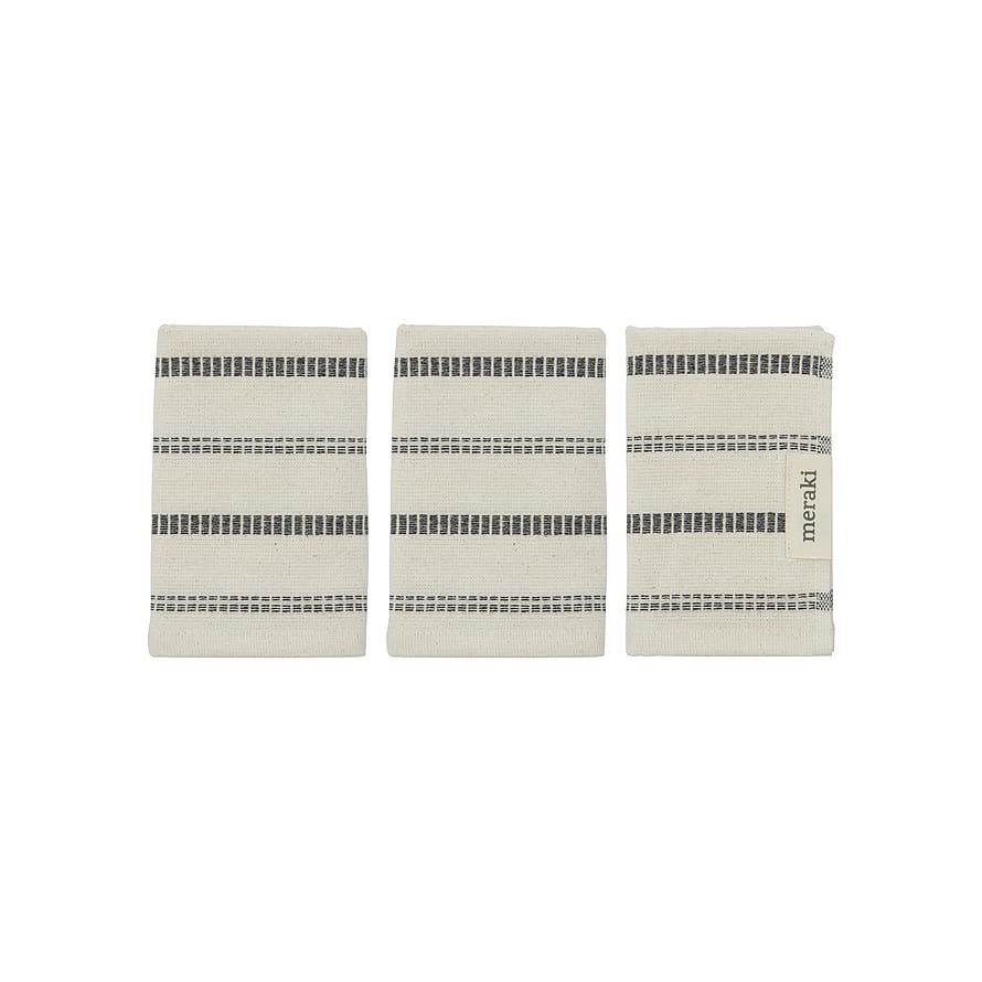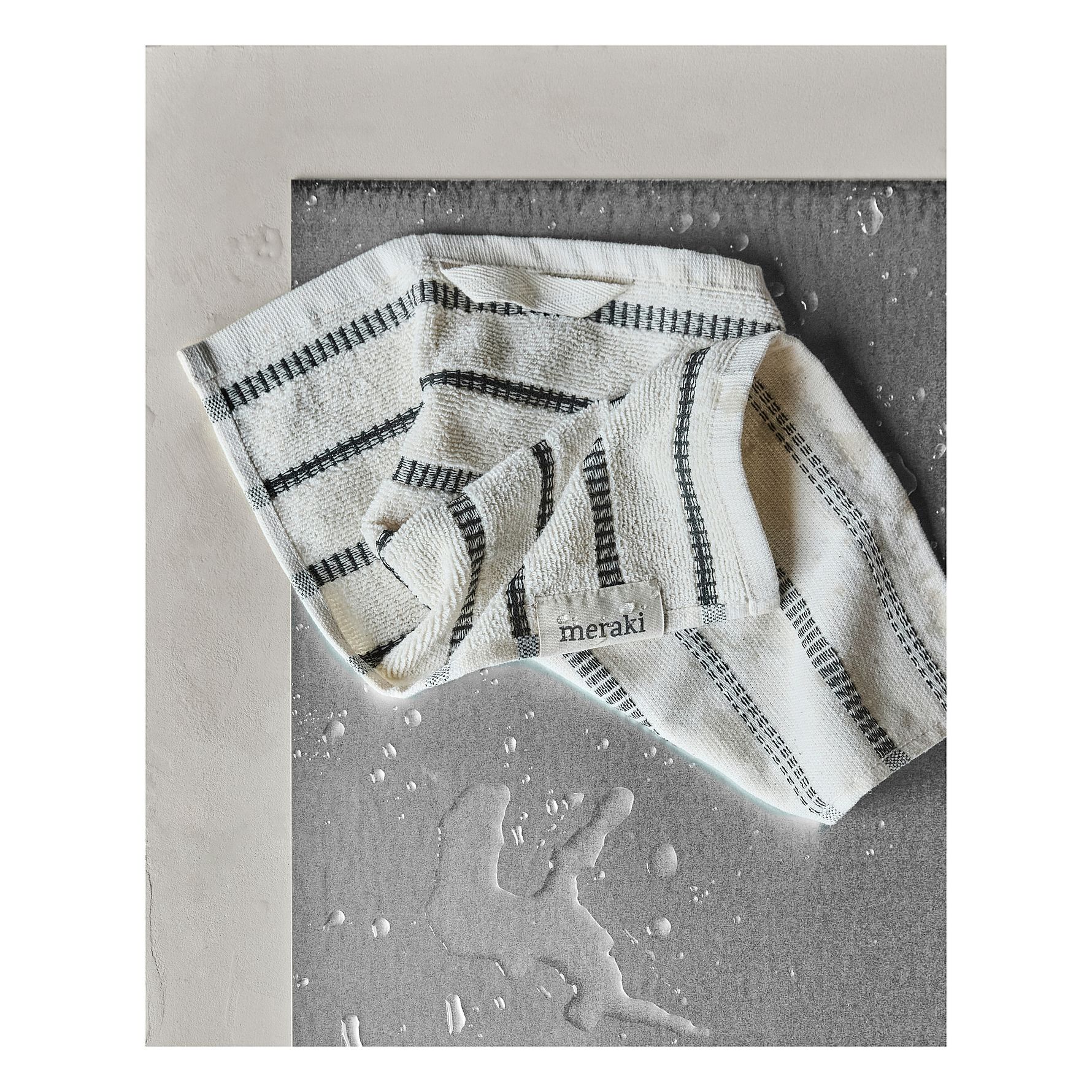 De fine striber i råhvid og sort spiller smukt sammen, mens den bløde bomuld forkæler huden med hver berøring – en tidløs hammam-inspireret luksus til dine daglige ritualer.