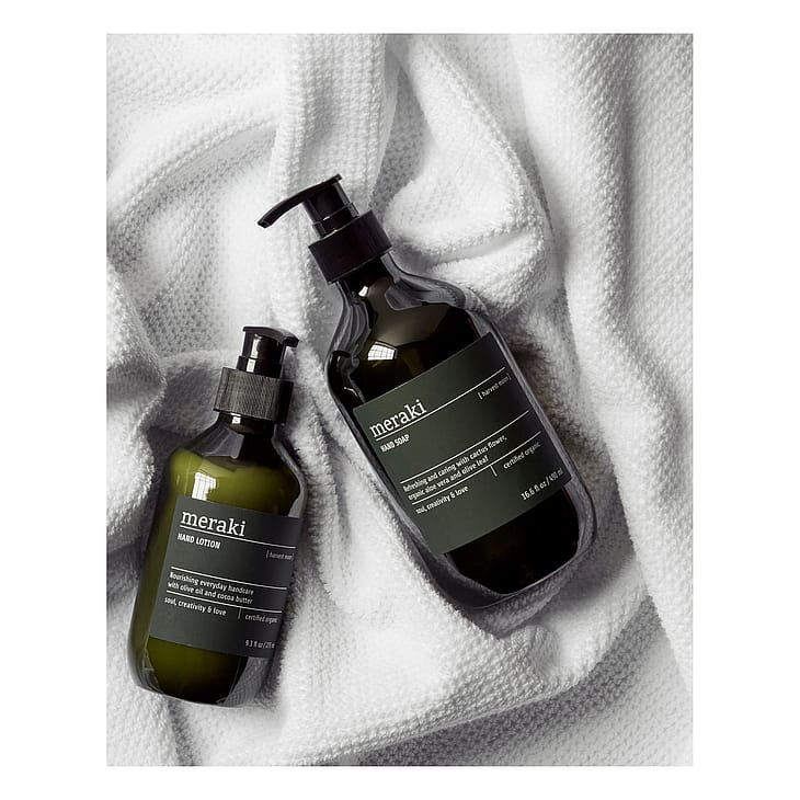 En håndsæbe fra Meraki, som mildt og effektivt rengør og plejer huden. Harvest Moon nærer og fugter huden takket være glycerin, aloe vera, olivenolie og ekstrakter fra kaktus. Certificeret COSMOS økologisk af Ecocert