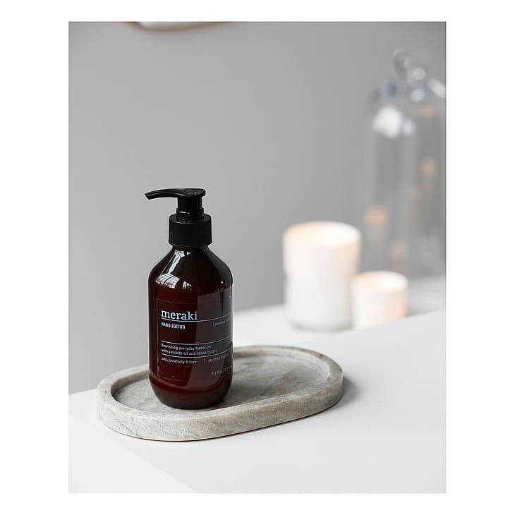 Plej dine hænder med denne certificeret økologiske Meadow Bliss håndlotion fra Meraki. Økologisk aloe vera, trehalose og glycerin giver fugt og beskytter huden mod udtørring. Med sit høje indhold af antioxidanten vitamin E fugter, nærer og blødgør økologisk avocadoolie huden. Certificeret COSMOS økologisk af Ecocert.