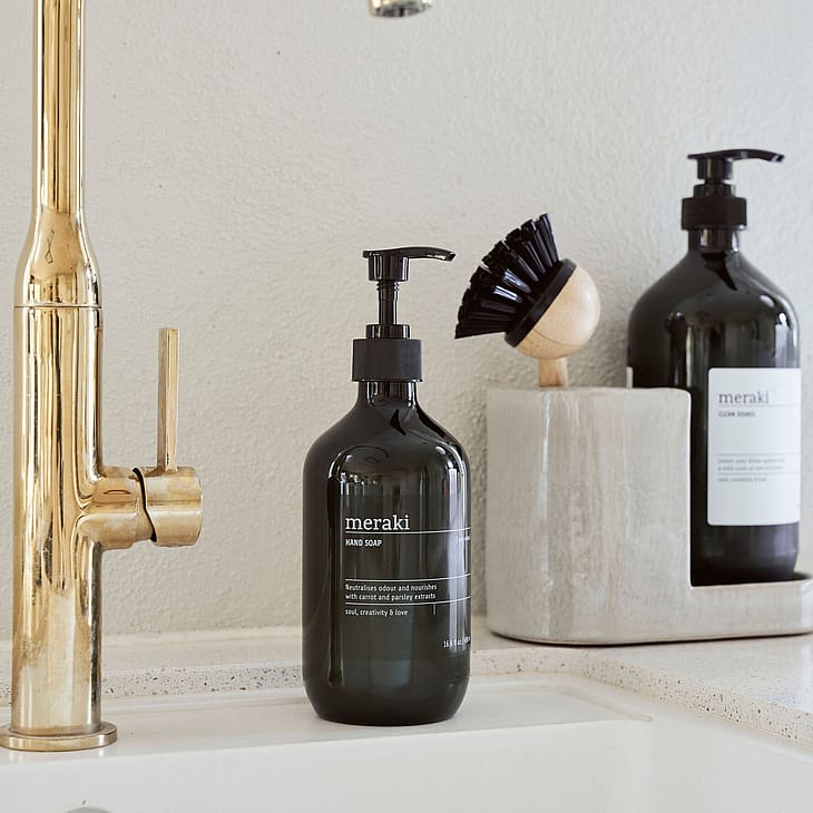 Vask dine hænder efter madlavningen og fjern samtidig uønskede lugte fra mad som løg, hvidløg og skaldyr med denne anti-odour håndsæbe fra Meraki. Takket være en let blomsterduft neutraliserer sæben effektivt stærke lugte, mens betain styrker hudens naturlige barriere og bevarer fugten. Formlen, som også indeholder ekstrakter fra persille og gulerod, efterlader dine hænder rene, bløde og velplejede. Stil sæben ved håndvasken og brug den, når du har lavet mad. Gør hænderne våde, påfør en passende mængde sæbe og skum hænderne ind. Skyl efter. Velegnet til daglig brug og alle hudtyper.
