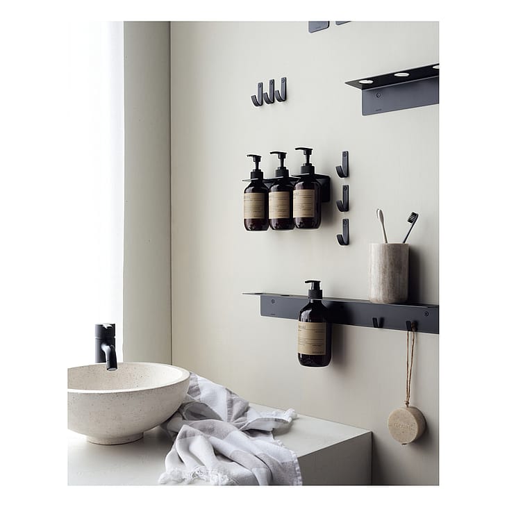 Dette dekorative og flotte vægophæng fra Meraki, passer perfekt til blandt andet vores shampooer og balsammer, sæber og lotions. Den er belagt i en flot sort nuance, som gør at den passer ind i ethvert hjem og emmer af eksklusivitet. Hæng den i brusenichen og undgå at dine sæber roder på gulvet. Eller brug i køkkenet til opvaskemiddel og håndsæbe. Mulighederne er mange men uanset hvad, vil det skabe et industrielt og dekorativt look i hjemmet. Passer til vores 275 ml + 490 ml flasker.