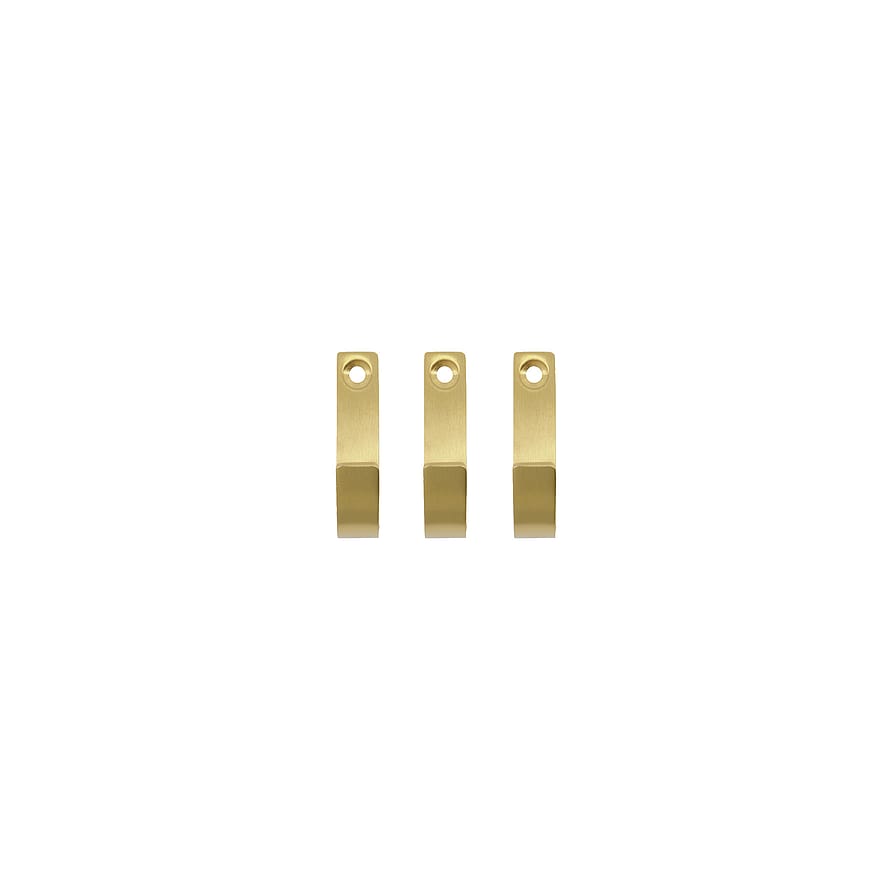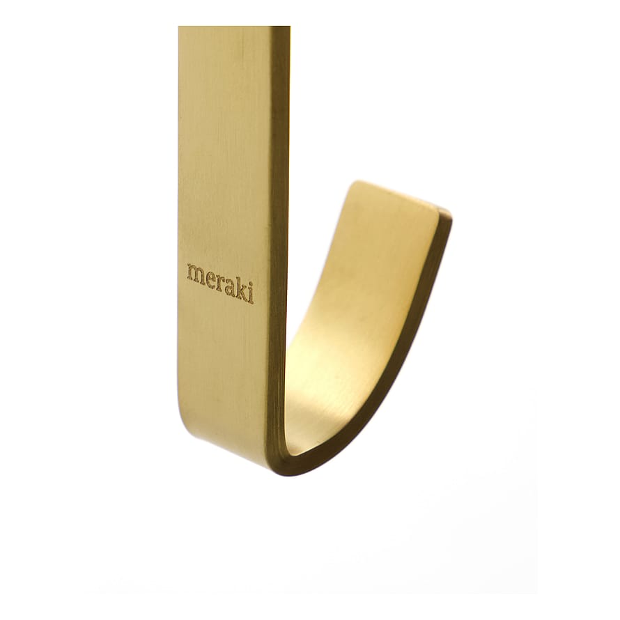 Giv dit badeværelse et varmere udtryk med dette sæt med 3 knager fra Meraki. Det rustfri stål har fået en børstet messingfinish, som giver rummet en elegant opdatering med en gylden nuance. Thapsus-knagerne er oplagte til dine håndklæder og badekåber, men også til at hænge kurve på. Fyld dem med dine plejeprodukter og frigør på den måde plads på hylderne.