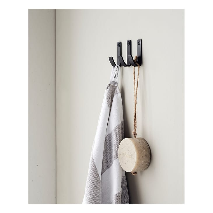 Det er ofte de små detaljer, som gør en stor forskel på dit badeværelse. Dette sæt med 3 knager i rustfri stål fra Meraki har en sort finish og et simpelt design, der passer til enhver indretning. Brug Thapsus-knagerne til dine håndklæder, men også til badek åber og kurve fyldt med dine plejeprodukter. En ideel løsning til et mindre badeværelse.