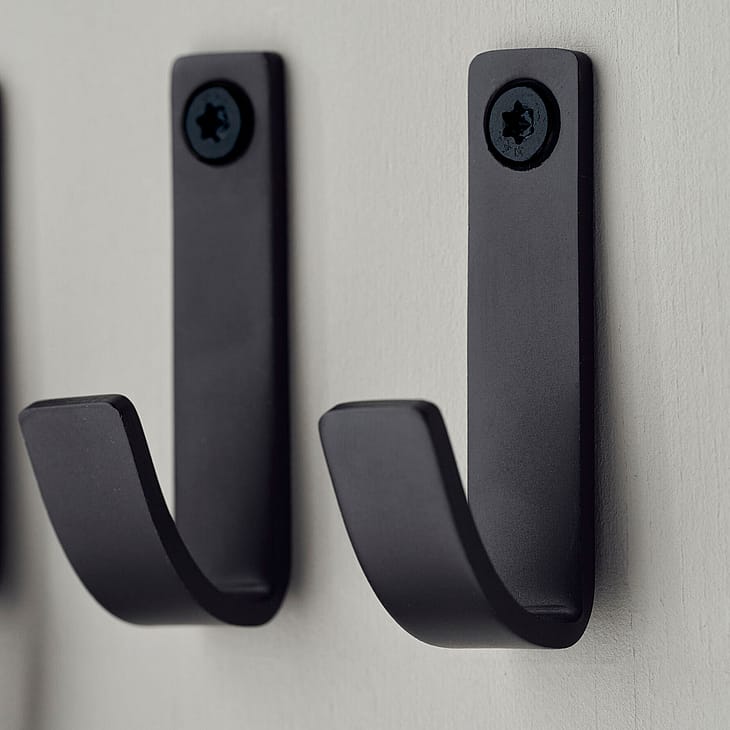 Pæne knagerDet ville være optimalt med to skruer i hver knage, da den rutcher lidt rundt. Derudover ville det være virkelig rart, hvis de blev købt MED sorte skruer. Når det er sagt, er vi meget glade for dem. Pæne og stilrene.