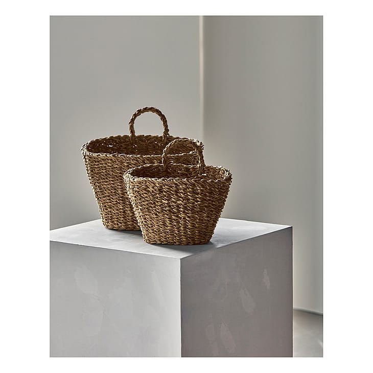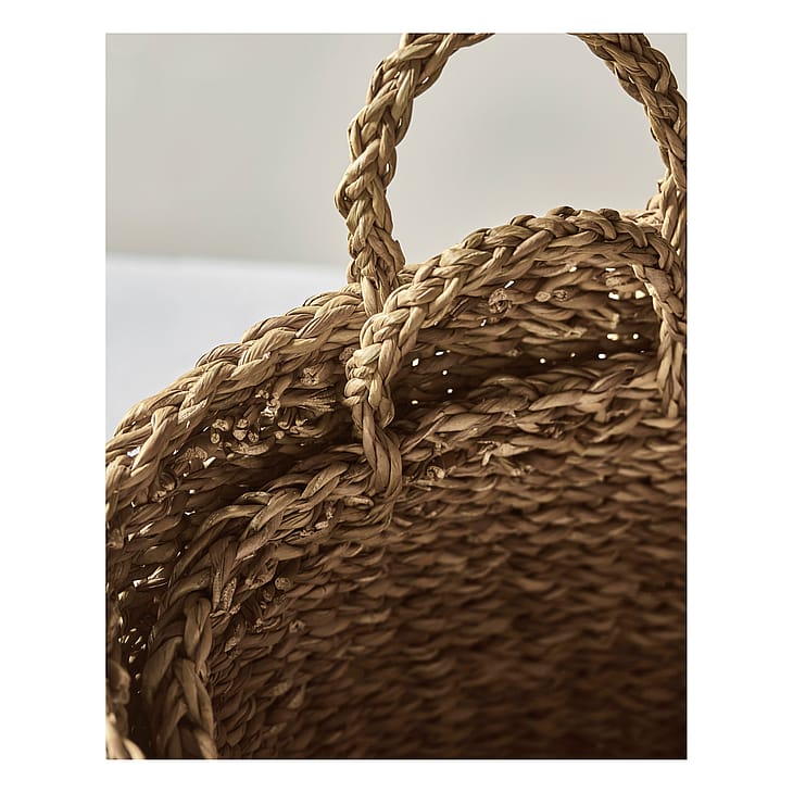 Organiser dine hverdagsfavoritter med disse ovale kurve i naturfarvet søgræs.