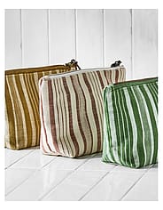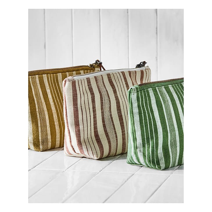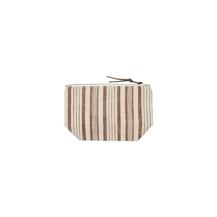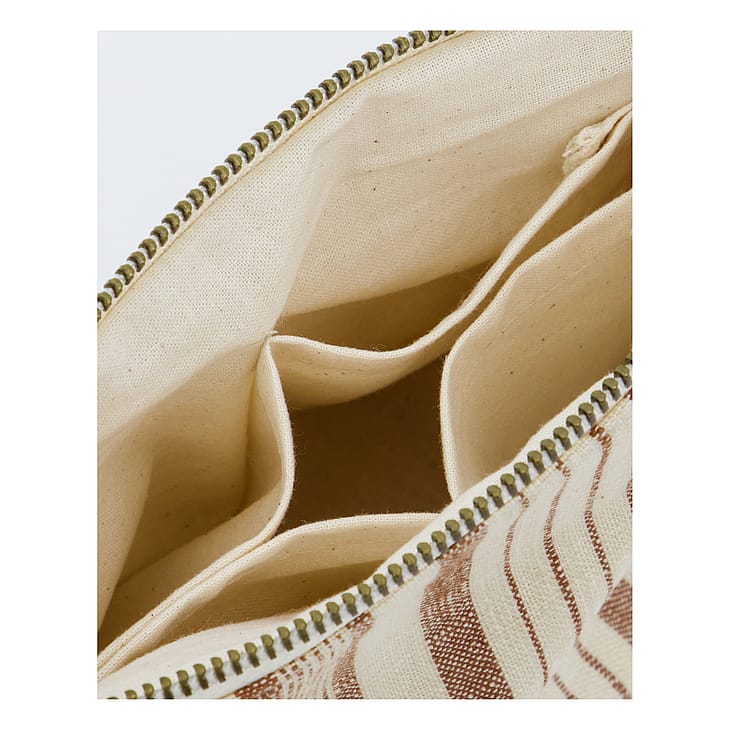 Denne makeuptaske i bomuld i terracotta er din ideelle ledsager til at organisere kosmetik og småting.