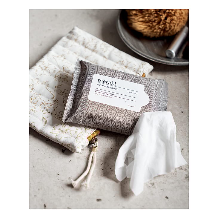 Meraki makeupfjerner servietterFjerner let mascara og frisker ansigtet op. Mild duft.