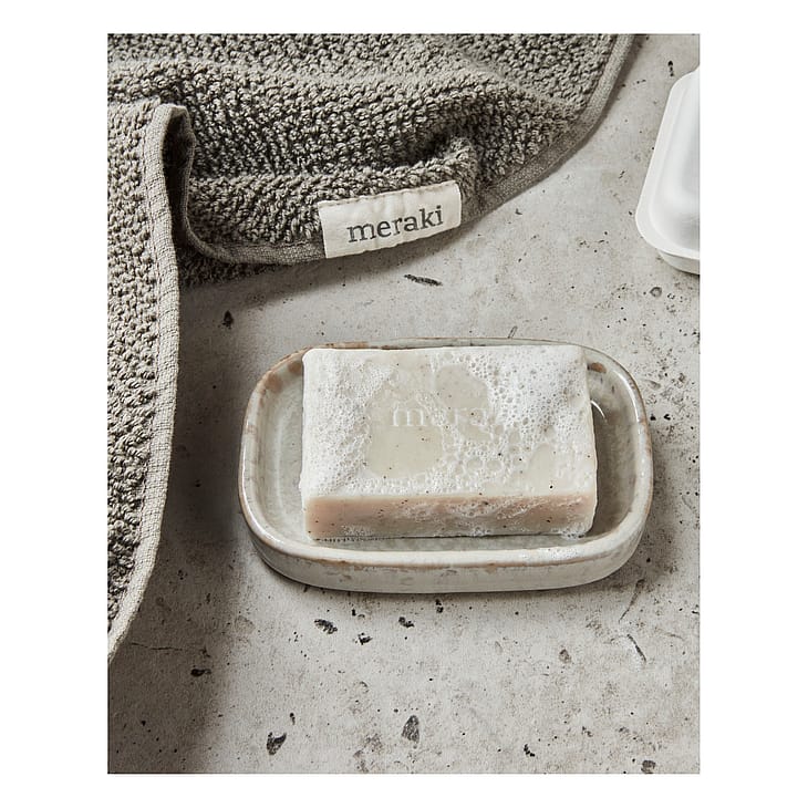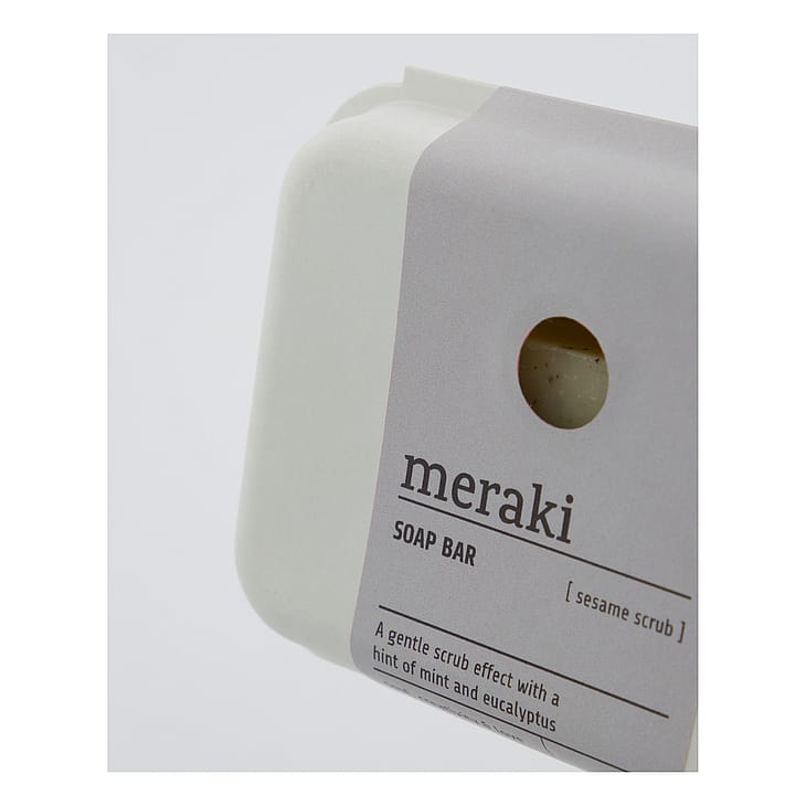 Giv dine hænder en blid eksfoliering, mens du vasker dem. Denne faste sæbe fra Meraki fjerner døde hudceller med en sesamscrub, mens essentielle olier fra spearmint, cedertræ og eukalyptus har en let kølende og opkvikkende effekt, mens du bruger sæben. Læg sæben i en sæbeskål på badeværelset eller i køkkenet for at holde håndvasken pæn og ryddelig.