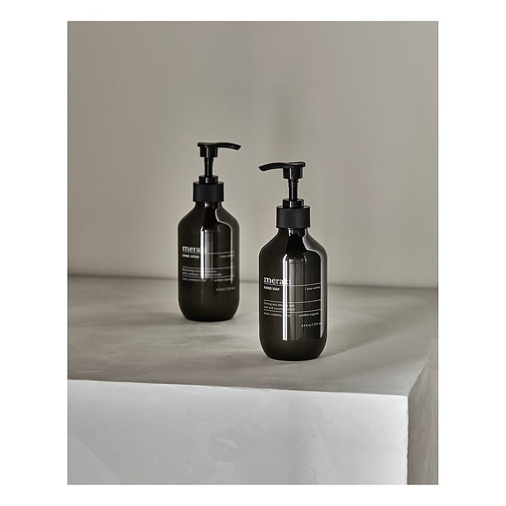 Hand soap: Aqua, Aloe Barbadensis Leaf Juice*, Lauryl Glucoside, Sodium Coco- Sulfate, Glycerin, Citric Acid, Sodium Benzoate, Cocamidopropyl Betaine, Sodium Sulfate, Potassium Sorbate, Maris Sal, Sodium Gluconate, Alcohol**, Sodium Hydroxide, Sodium Chloride, Avena Sativa Kernel Extract*, Cucumis Sativus Fruit Extract*, Sorbic Acid, Parfum, Limonene, Linalool, Citronellol. *ingredients from organic farming. **made using organic ingredients 99.2% natural origin of total. 10.1% of the total ingredients are from organic farming. Hand lotion: Aqua, Aloe Barbadensis Leaf Juice*, Lauryl Glucoside, Sodium Coco- Sulfate, Glycerin, Citric Acid, Sodium Benzoate, Cocamidopropyl Betaine, Sodium Sulfate, Potassium Sorbate, Maris Sal, Sodium Gluconate, Alcohol**, Sodium Hydroxide, Sodium Chloride, Avena Sativa Kernel Extract*, Cucumis Sativus Fruit Extract*, Sorbic Acid, Parfum, Limonene, Linalool, Citronellol. *ingredients from organic farming. **made using organic ingredients 99.2% natural origin of total. 10.1% of the total ingredients are from organic farming.