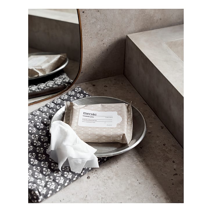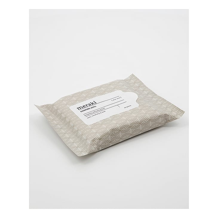 En pakke med 20 opfriskende renseservietter fra Meraki med aloe vera og kamille. Det er den nemme og effektive løsning, når du er på farten eller ikke har den fornødne tid til en fuld ansigtspleje. Renseservietten giver med det samme en opfriskende fornemmelse.