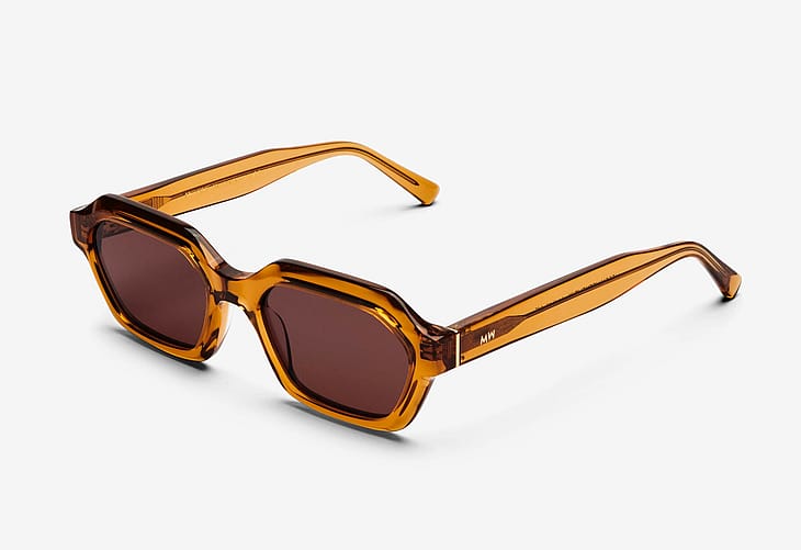 Med sin unikke sekskantede form og skarpe kanter er ANTHONY højt på listen over årets fedeste solbriller. Et håndlavet acetatstel med 5-barrel guldhængsler og guld-finish på stængerne. Fuld UV400 (UVA+UVB) beskyttelse.