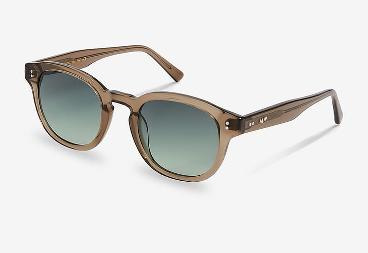 Solbrillerne er lavet af håndlavet acetat og er designet i Danmark af en lille dansk virksomhed. Solbrillerne har nickel-fri hænglser, fuld UV400A+B beskyttelse og kommer i en hvid æske med en mikrofiberpose som også kan bruges som pudseklud.