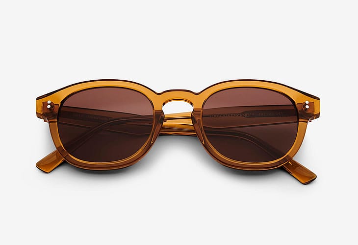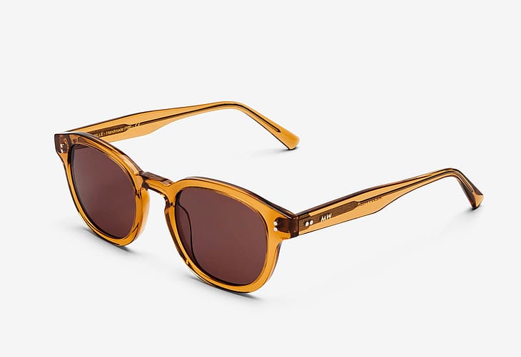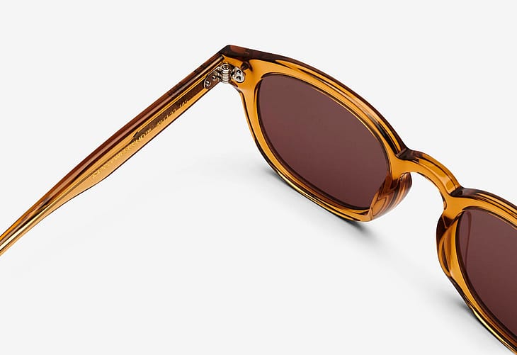 Solbrillerne er lavet af håndlavet acetat og er designet i Danmark af en lille dansk virksomhed. Solbrillerne har nickel-fri hænglser, fuld UV400A+B beskyttelse og kommer i en hvid æske med en mikrofiberpose som også kan bruges som pudseklud.