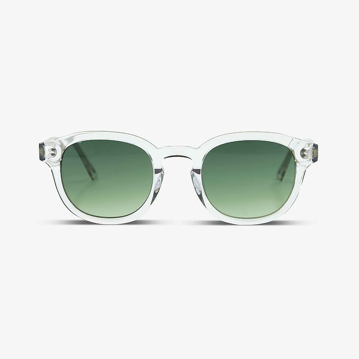 Solbrillerne er lavet af håndlavet acetat og er designet i Danmark af en lille dansk virksomhed. Solbrillerne har nickel-fri hænglser, fuld UV400A+B beskyttelse og kommer i en hvid æske med en mikrofiberpose som også kan bruges som pudseklud.