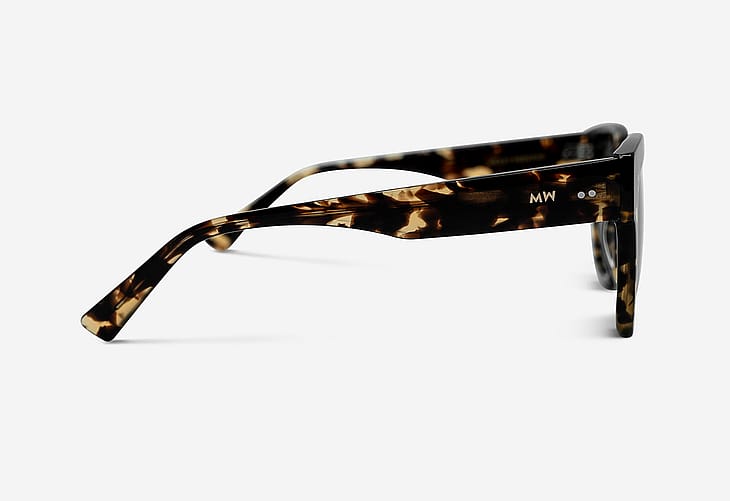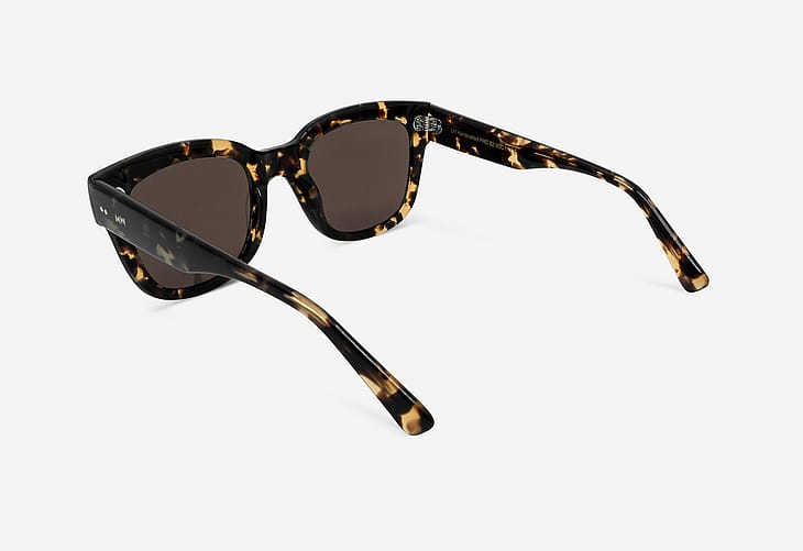 Solbrillerne er lavet af håndlavet acetat og er designet i Danmark af en lille dansk virksomhed. Solbrillerne har nickel-fri hænglser, fuld UV400A+B beskyttelse og kommer i en hvid æske med en mikrofiberpose som også kan bruges som pudseklud.