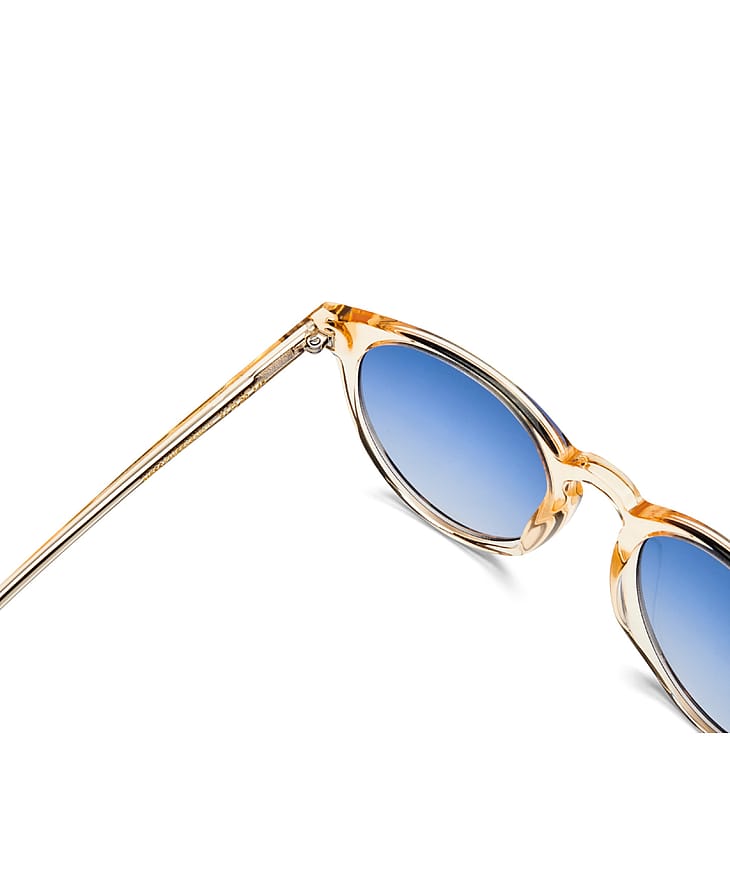 Solbrillerne er lavet af håndlavet acetat og er designet i Danmark af en lille dansk virksomhed. Solbrillerne har nickel-fri hænglser, fuld UV400A+B beskyttelse og kommer i en hvid æske med en mikrofiberpose som også kan bruges som pudseklud