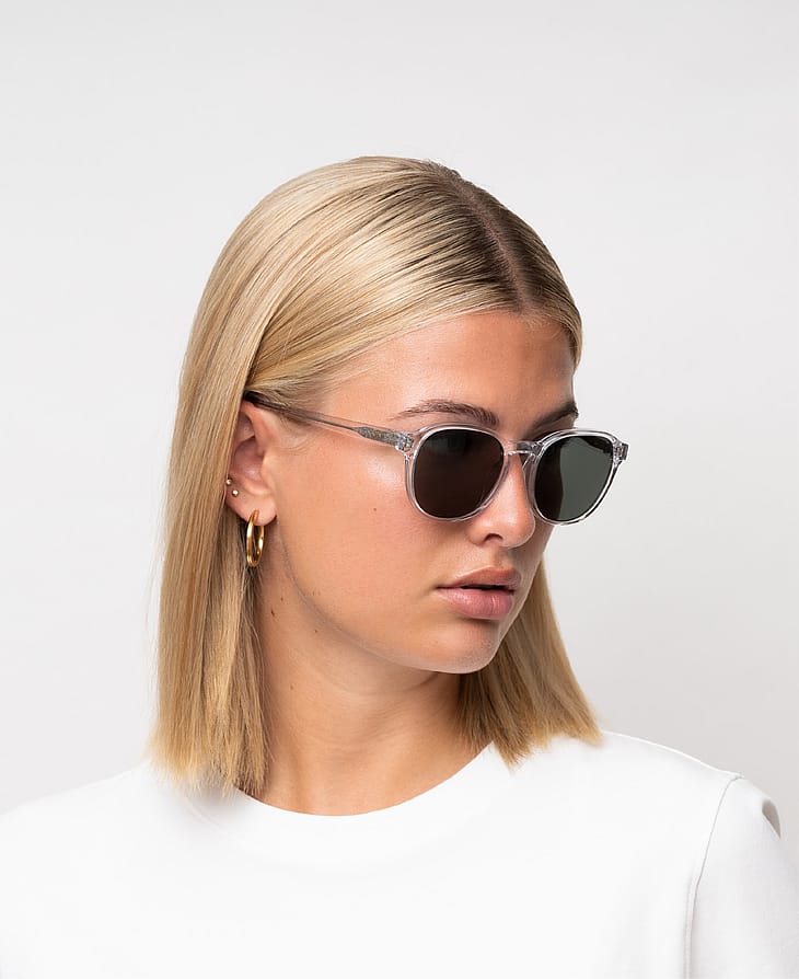 Solbrillerne har nickel-fri hænglser, fuld UV400A+B beskyttelse og kommer i en hvid æske med en mikrofiberpose som også kan bruges som pudseklud.