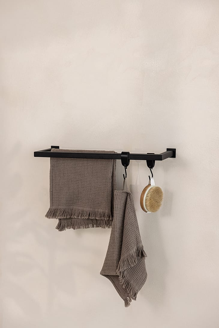 Med sit enkle design passer STENNI håndklædeholder ind i både moderne, nordiske og klassiske badeværelser. Og med muligheden for at tilkøbe læder-S-kroge kan du udvide funktionaliteten og hænge ekstra tilbehør op på elegant vis.