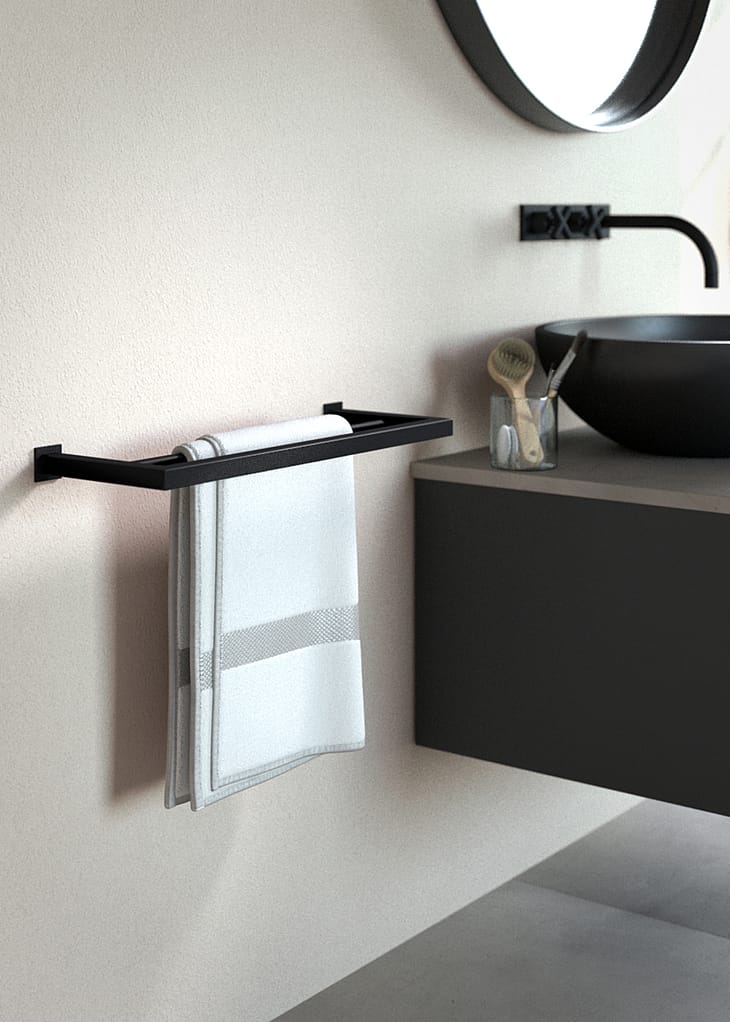 Inkluderet: 1 håndklædeholder + monteringsmateriale (uden tilbehør)
