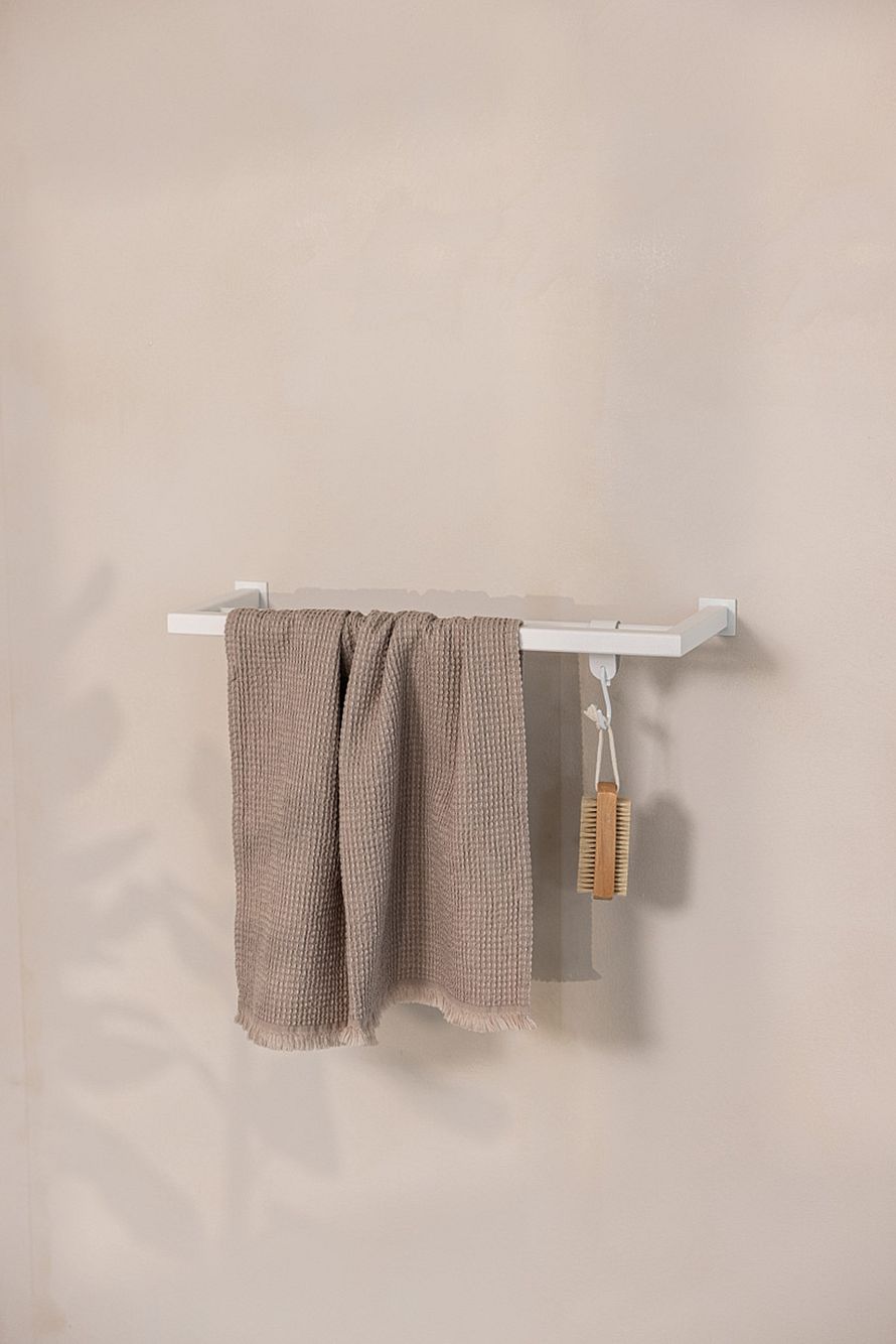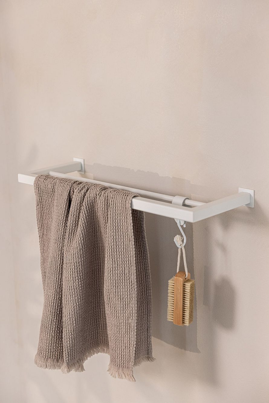 Med sit enkle design passer STENNI håndklædeholder ind i både moderne, nordiske og klassiske badeværelser. Og med muligheden for at tilkøbe læder-S-kroge kan du udvide funktionaliteten og hænge ekstra tilbehør op på elegant vis.