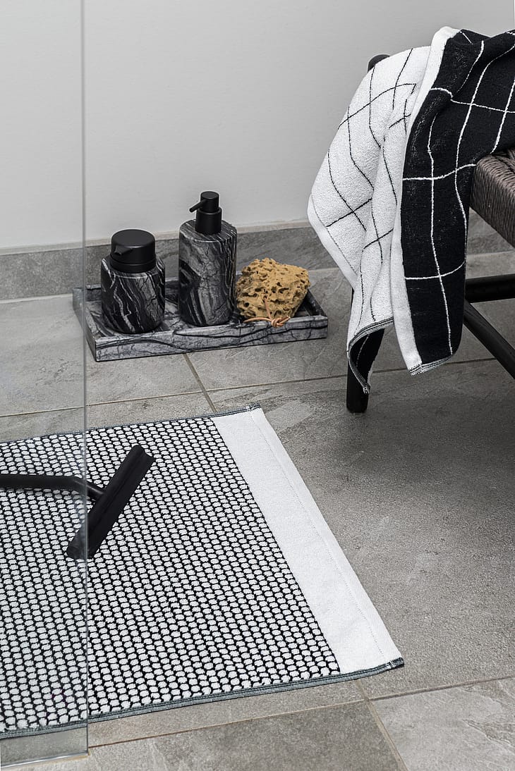 GRID bademåtten har et grafisk og stilrent design. Det sorte og råhvide design har undertoner af retro og komplementerer badeværelser i enkel, nordisk stil.