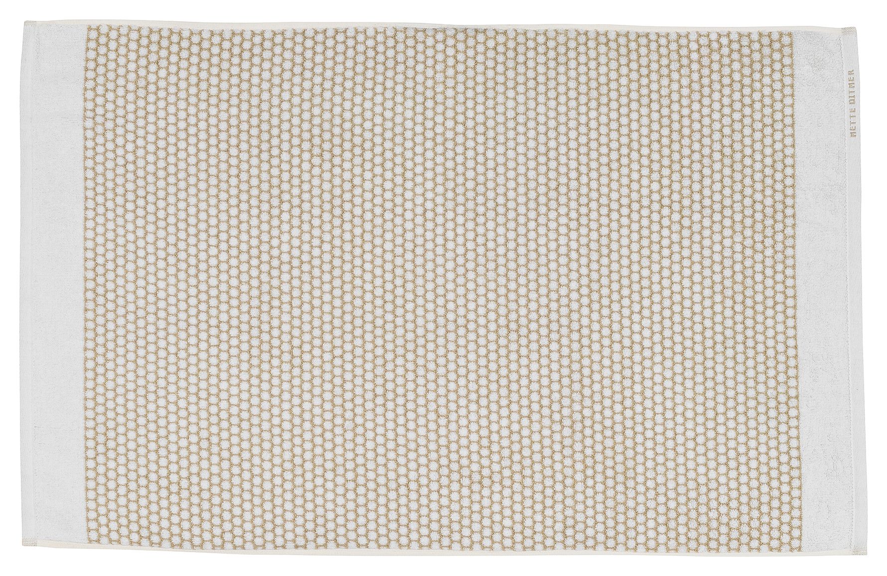 GRID bademåtten har et grafisk og stilrent design. Det sandfarvede og råhvide design har undertoner af retro og komplementerer badeværelser i enkel, nordisk stil.