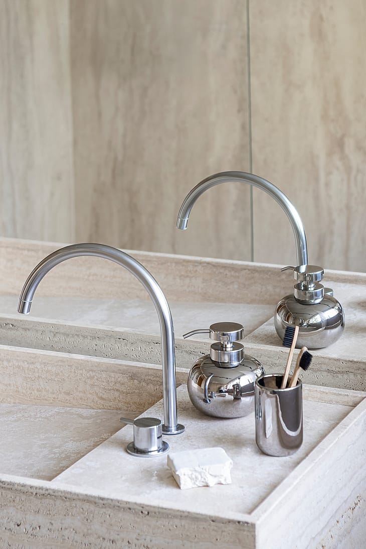 LOTUS dispenseren fra Mette Ditmer har et enkelt, men iøjnefaldende udtryk med sin stilrene, blanke kromfinish.