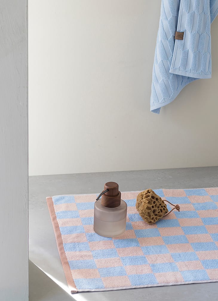 Tilføj farver og et grafisk touch til badeværelset med RETRO-bademåtten fra Mette Ditmer.
