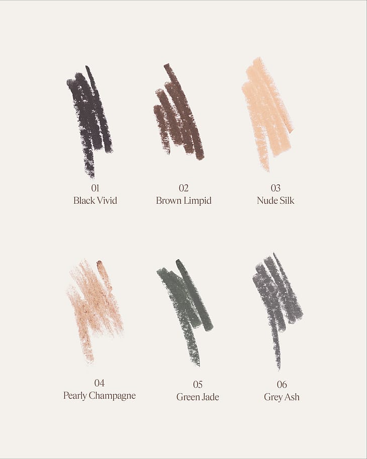 05 Green Jade: En sofistikeret, dybgrøn eyeliner, der giver et iøjnefaldende, men stadig elegant look. Perfekt til at fremhæve øjnene med et strejf af farve.
