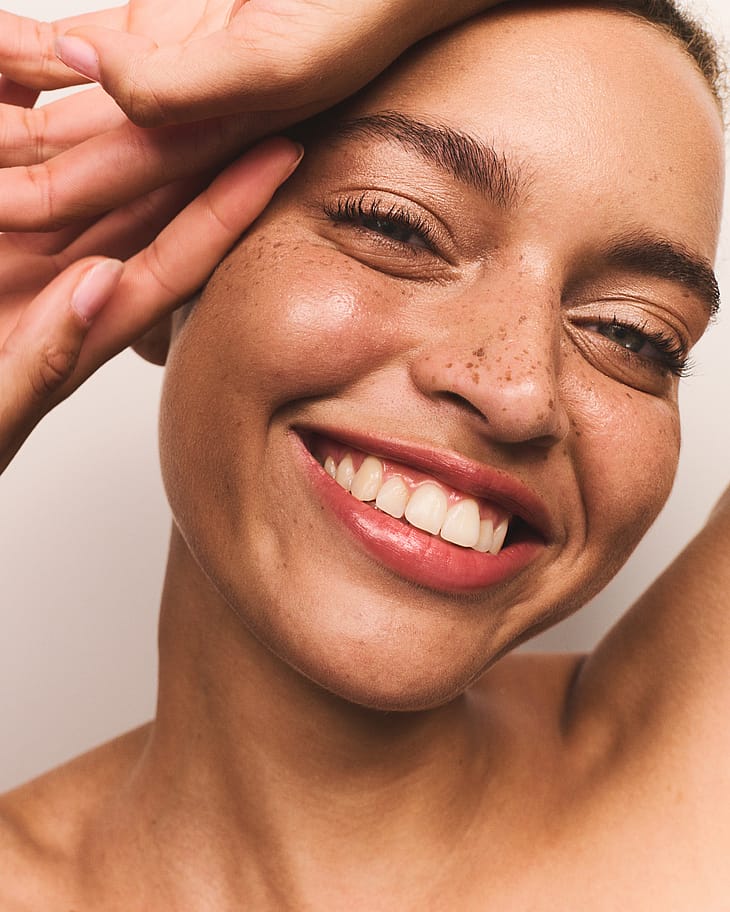 - Påfør en lille mængde Tinted Beauty Balm direkte på huden og blend med fingre eller Skin Blender Brush.