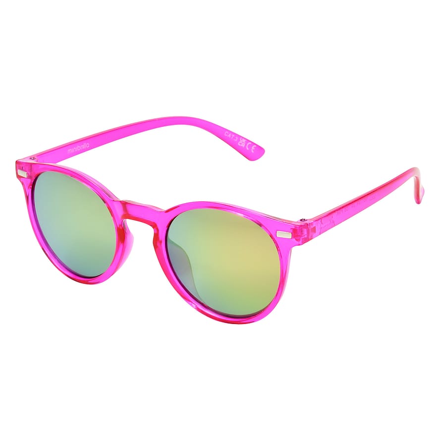 Fuchsia junior-solbriller – 100% UV-beskyttelse Strålende farve og moderne stil! Disse fuchsiafarvede junior-solbriller med tonede glas giver et frisk og sjovt look. Med 100% UV-filter, der beskytter børnenes øjne, mens de nyder solen med stil.