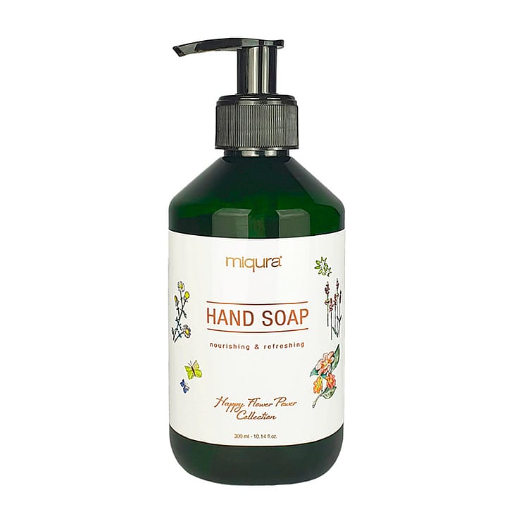 Flower håndsæbe. Flower Hand Soap fra Miqura Flower er en nærende og effektiv håndsæbe, der renser huden og efterlader den ren og blød med en frisk duft af white musk.
