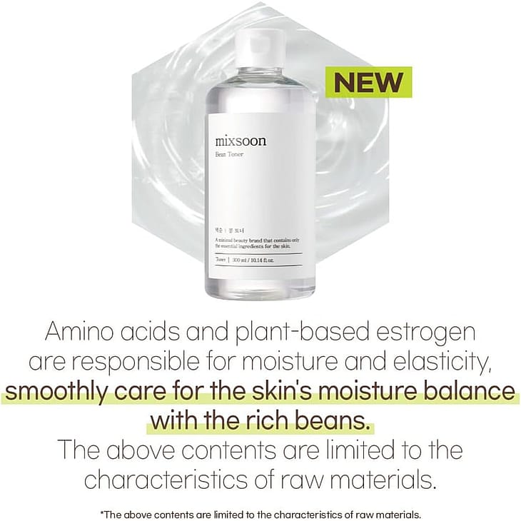 Mixsoon Bean Toner er nn beroligende toner beriget med Glycine Max (Soybean) Seed Extract for at berolige og blødgøre irriteret hud, samtidig med at den beskytter huden mod skader forårsaget af frie radikaler.