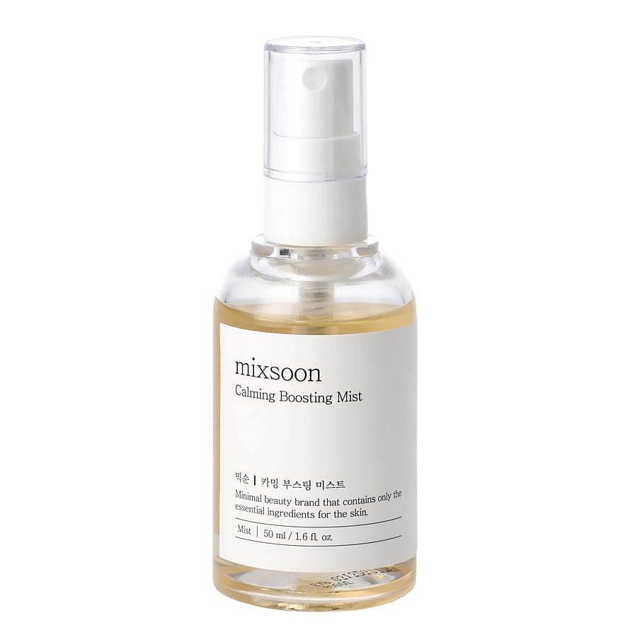 Mixsoon Calming Boosting Mist er en duftende mist til øjeblikkelig fugtighed. Brug den ofte for at berolige og fugte stresset hud når som helst, hvor som helst.