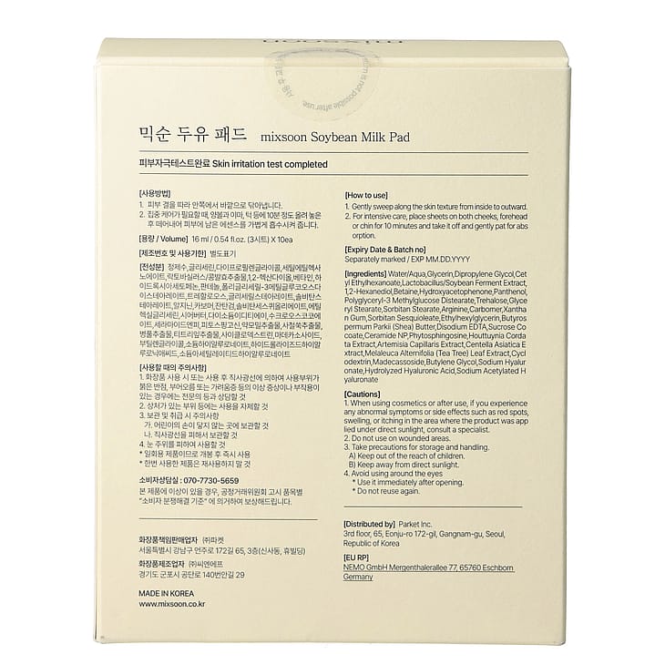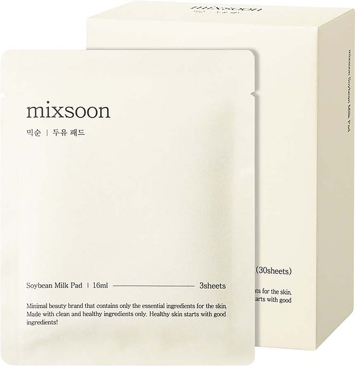 Mixsoon Soybean Milk Pad er en sheet maske, der indeholder Lactobacillus/Soybean Ferment Extract for at give intensiv næring til tør hud.