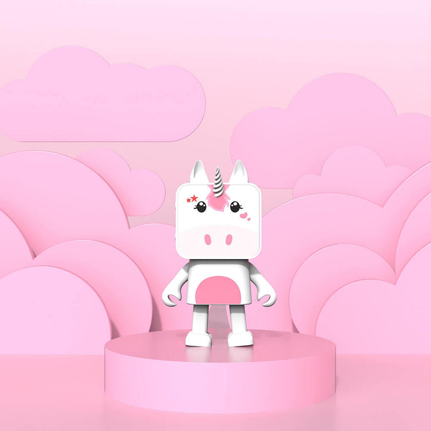 Med kraftig lyd og et originalt design bevæger højttaleren sig efter musikken og underholder både børn og voksne.
